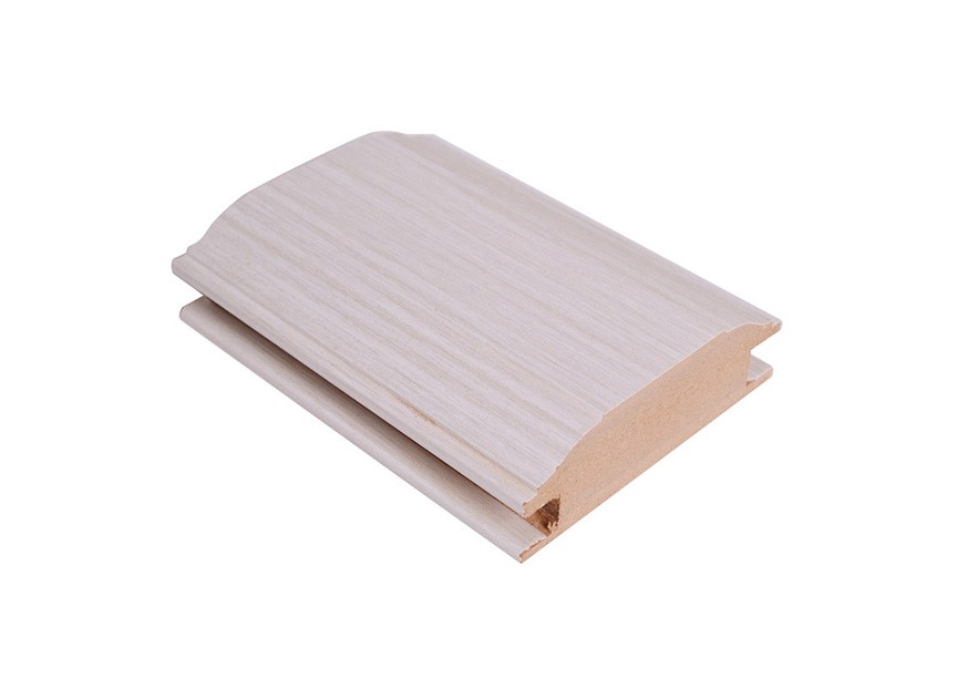 采用符合國標(biāo)GB18584-2001的優(yōu)質(zhì)(高林,豐林)原木原膠E1高密度中纖板,密度達(dá)到720kg/立方以上,面層采用大亞,亞創(chuàng)木業(yè)的薄板,使用無毒環(huán)保德國漢高膠水,冷壓成型,數(shù)控電子鋸精準(zhǔn)開料(誤差10絲以內(nèi)),經(jīng)過六軸四面刨,精鋼石刀具,刨切成型,每20-30支游標(biāo)卡尺測量,誤差控制在10絲以內(nèi),成型后及送包覆車間,通過萬能包覆機(jī)(如巴貝蘭),多重硅膠壓輪有序均勻的壓在材料表面,通過膠水加熱,不損壞表面飾材的辦法,實(shí)現(xiàn)無縫粘接,形成完整一體化成型后,即可用于生產(chǎn)包覆拼裝門的邊框料和作為衣柜,櫥柜,裝修裝飾用的線條,(羅馬柱,頂線系列等)。